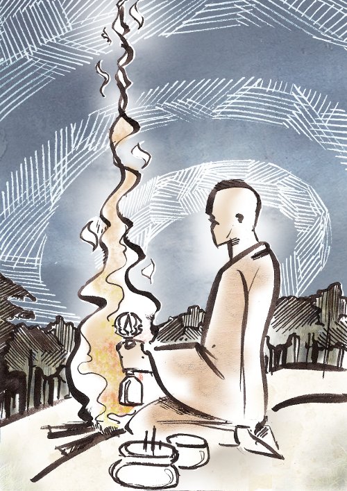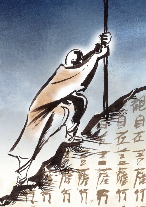 Erste Meditationsübungen wecken ein tiefes Interesse bei Kukai – eine Sehnsucht nach einer Erkenntnis jenseits der Worte. Er beschließt, sein Studium abzubrechen und führt das entbehrungsreiche, aber auch freie Leben eines wandernden Bergasketen. Vgl. Hakeda: Kukai – Major works, S. 20ff