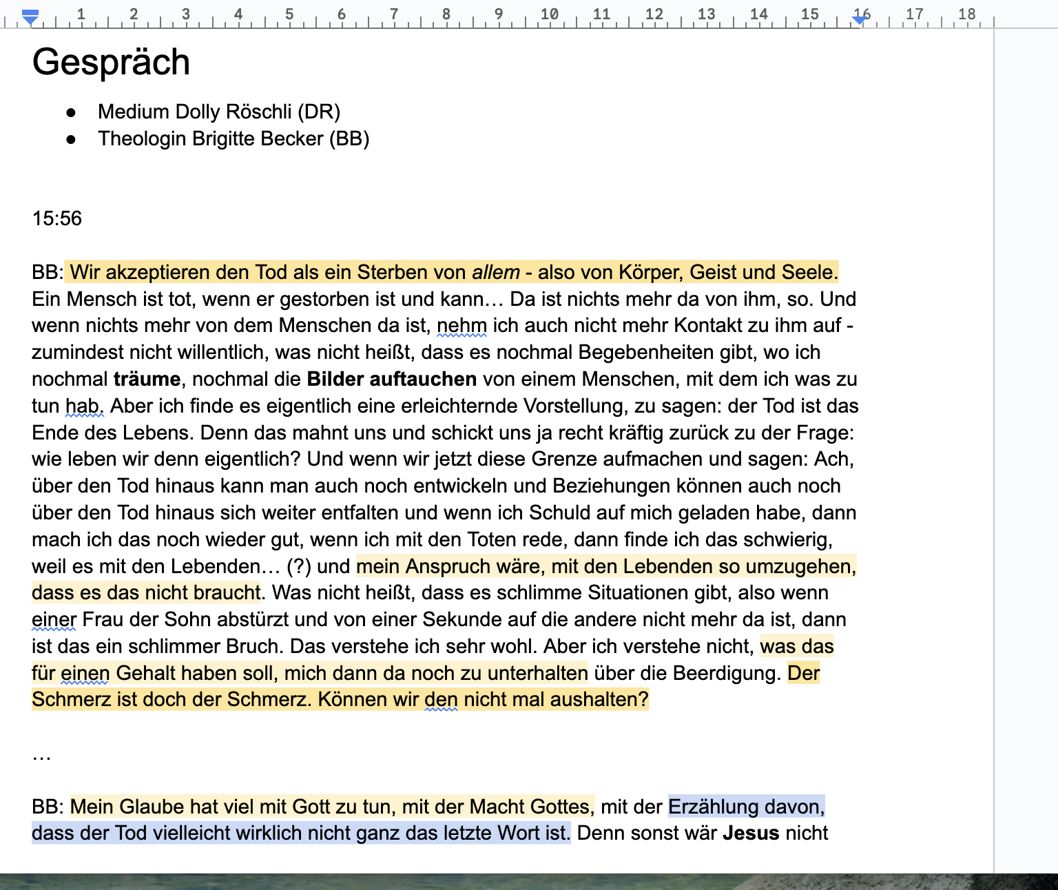 In einem interessanten YouTube-Video (Sternstunde Religion) diskutiert ein Medium, welches Kontakt mit Verstorbenen aufnehmen kann, mit einer evangelischen Theologin und Pastorin.