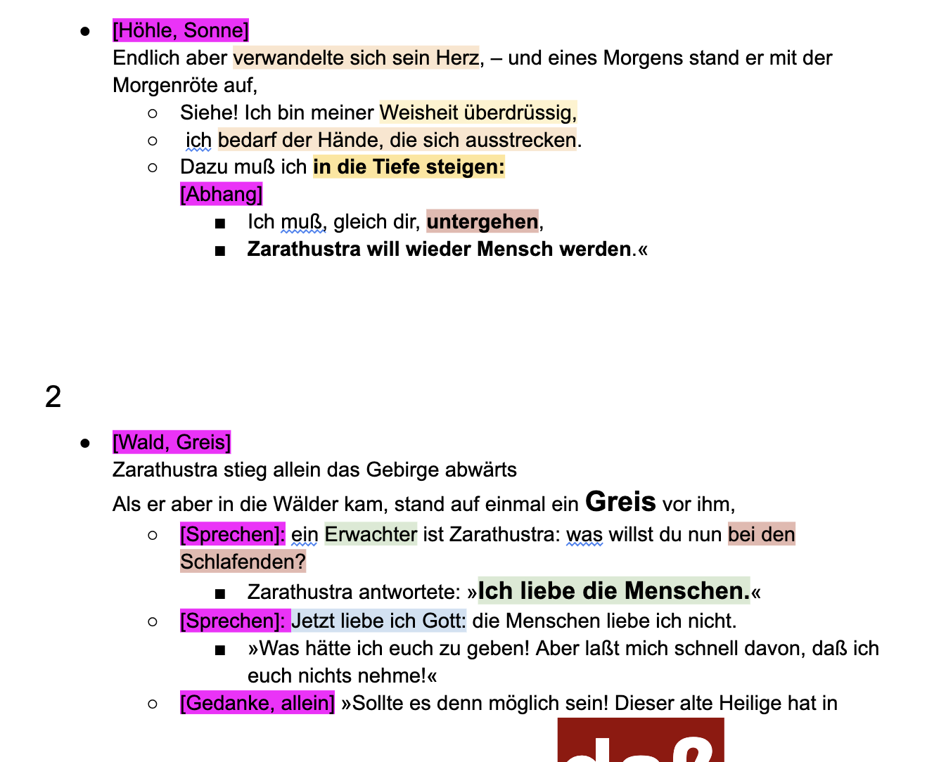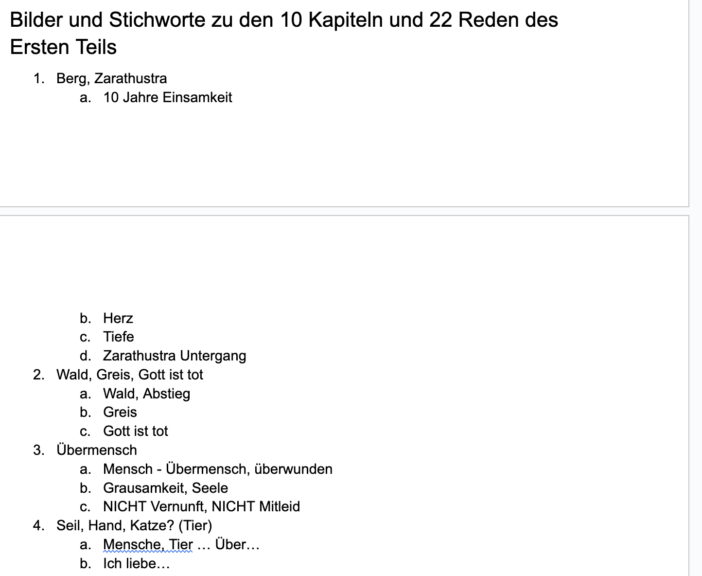 Nietzsches Zarathustra kann auch als Alternativ-Zugang zur religiƶsen Erfahrung gedeutet werden. Es ist die Geschichte eines Einsiedlers, der seine Erkenntnis, dass "Gott tot ist" mit der Welt teilen will...